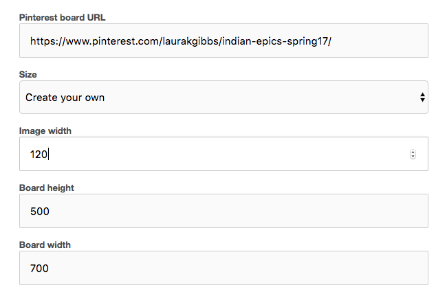 You can create all kinds of widgets for Pinterest accounts, and the option I used here was to create a custom-sized Board. To create a widget, just click on the ... menu you see at any Board: